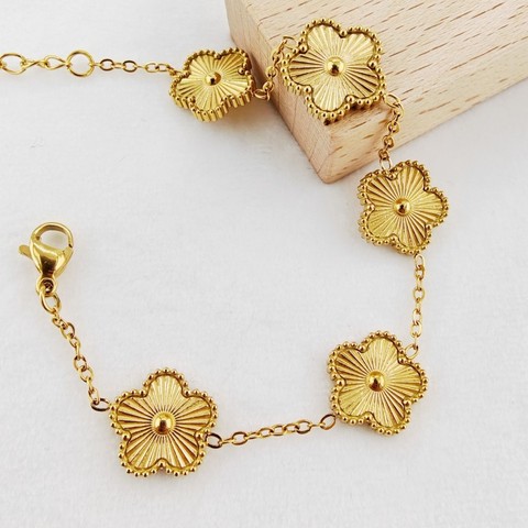 2025 classico in acciaio inox 18K placcato oro cinque foglie fortunato braccialetto per le donne ragazza Link braccialetti regali gioielli da sposa