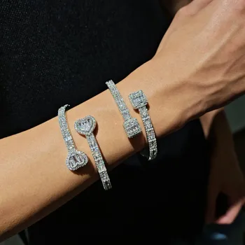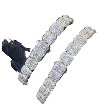 • Custom Jewelry 925 Sterling Silver Iced VVS Baguette Moissanite T Square Diamond Link Bracelets and Bangles for Women Men