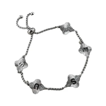 • Women's Stainless Steel Dainty Flower Charm Adjustable Chain Bracelet Fashionable Bangles